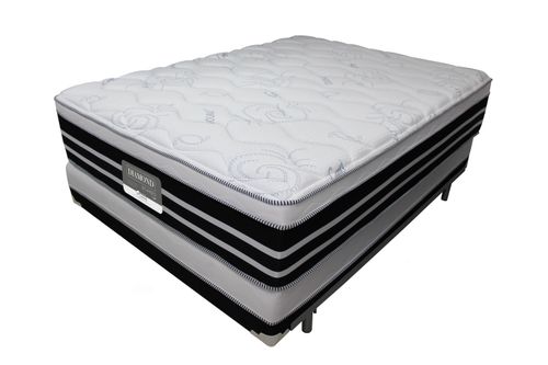 Colchón de alta calidad con telas antialérgicas importadas y bordados multiquilter, que incluye un pillow top para mayor comodidad. Utilizable en ambos lados, presenta resortes Bonnell y un 50% de refuerzo interno, garantizando una mayor duración. La espuma de alta densidad ofrece soporte óptimo y confort. La base rígida cuenta con un marco de madera curado y secado al horno, y una refaja antideslizante con bordados multiquilter. Incluye protectores en las esquinas y cuenta con una garantía de 5 años.